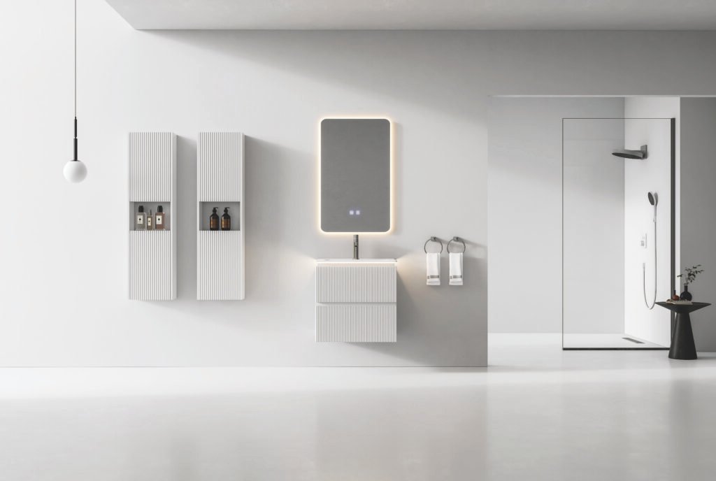 VOPOMEX bathroom vanity match with storage mirror cabinet or Bathroom LED Mirror with IP44 waterproof grade, common function are Bluetooth, Magnifying, Anti-fog, CCT & Dimmable adjusting, Touch & Motion sensor switch, Digital Clock.